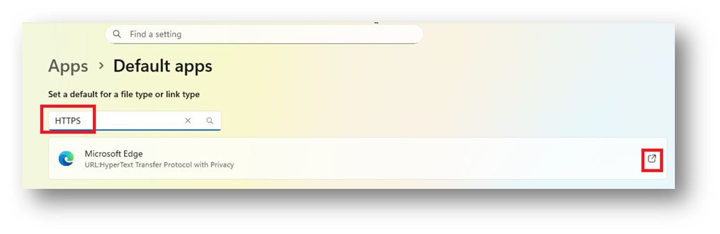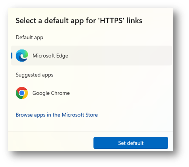 Type HTTPS (to show you which is the current default app for HTTPS links) and click on the box on the right: